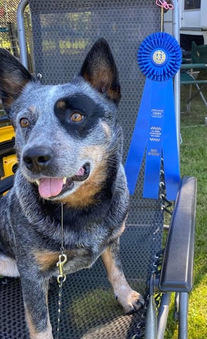 Dash has more wins and group placings than we can count and has filled our walls at home! She was the #5 Canadian Australian Cattle Dog in 2021 after only showing for the first half of the year. We know she could have gone much further. We are eternally thankfully to Cobbers ACD's for allowing us to have this girl as a part of our family and first step into show dog life. She embodies the loyalty, intelligence, strength, versatility, and extra hair that has drawn us to this breed over the last decades.
