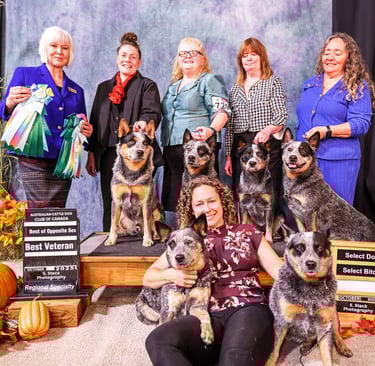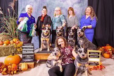 After multiple Winners and Reserve winners in Washington, Guy, Rogue, and Debbie headed to Oregon for the Cascade Australian Cattle Dog specialty. They didn't disappoint, Rogue awarded Winners Bitch and Best of Winners, and Guy Reserve Winners Dog.